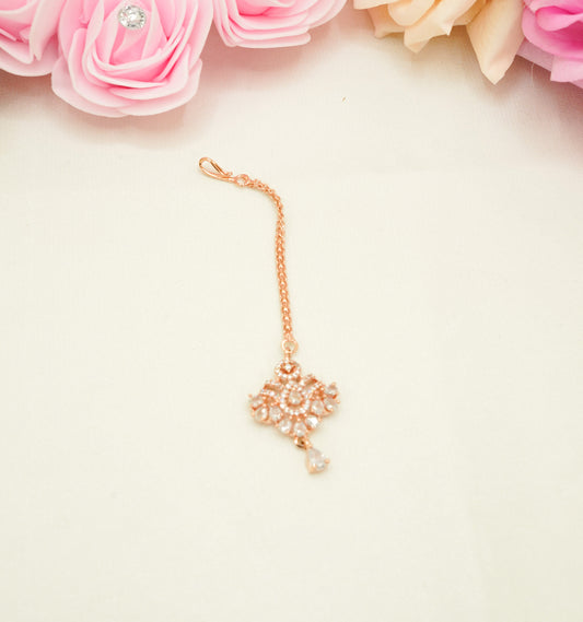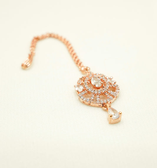 Kids’ Rose Gold Tikka – Lightweight Crystal Maang Tikka for Girls’ Eid & Wedding Wear