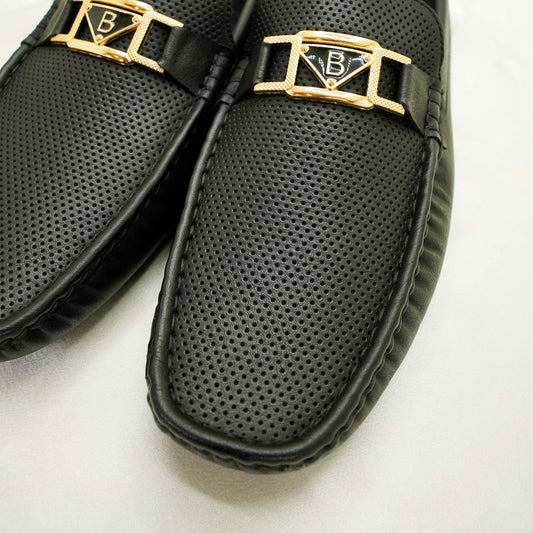 Men’s Textured Slip-On Loafers – Gold ‘B’ Buckle Dress Shoes for Weddings, Events & Casual Wear