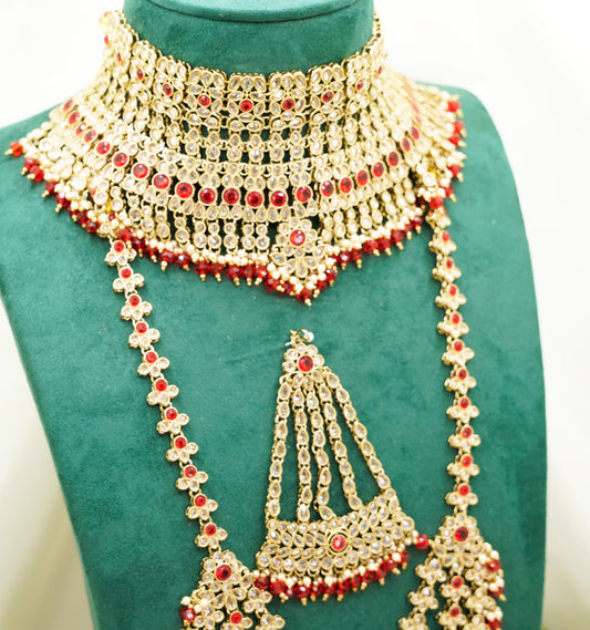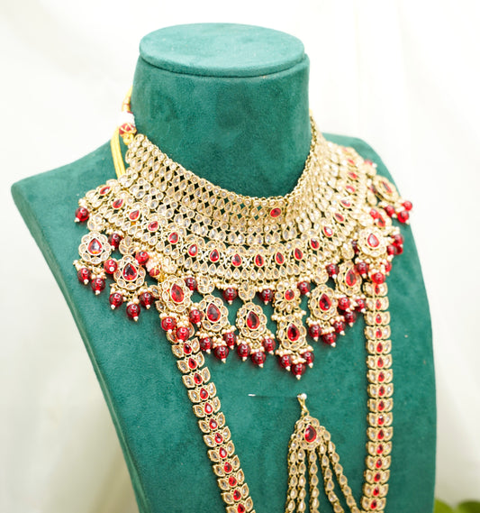 Sarah Bridal Set – Full Bridal Jewellery Set - BR-102 - Red & Gold