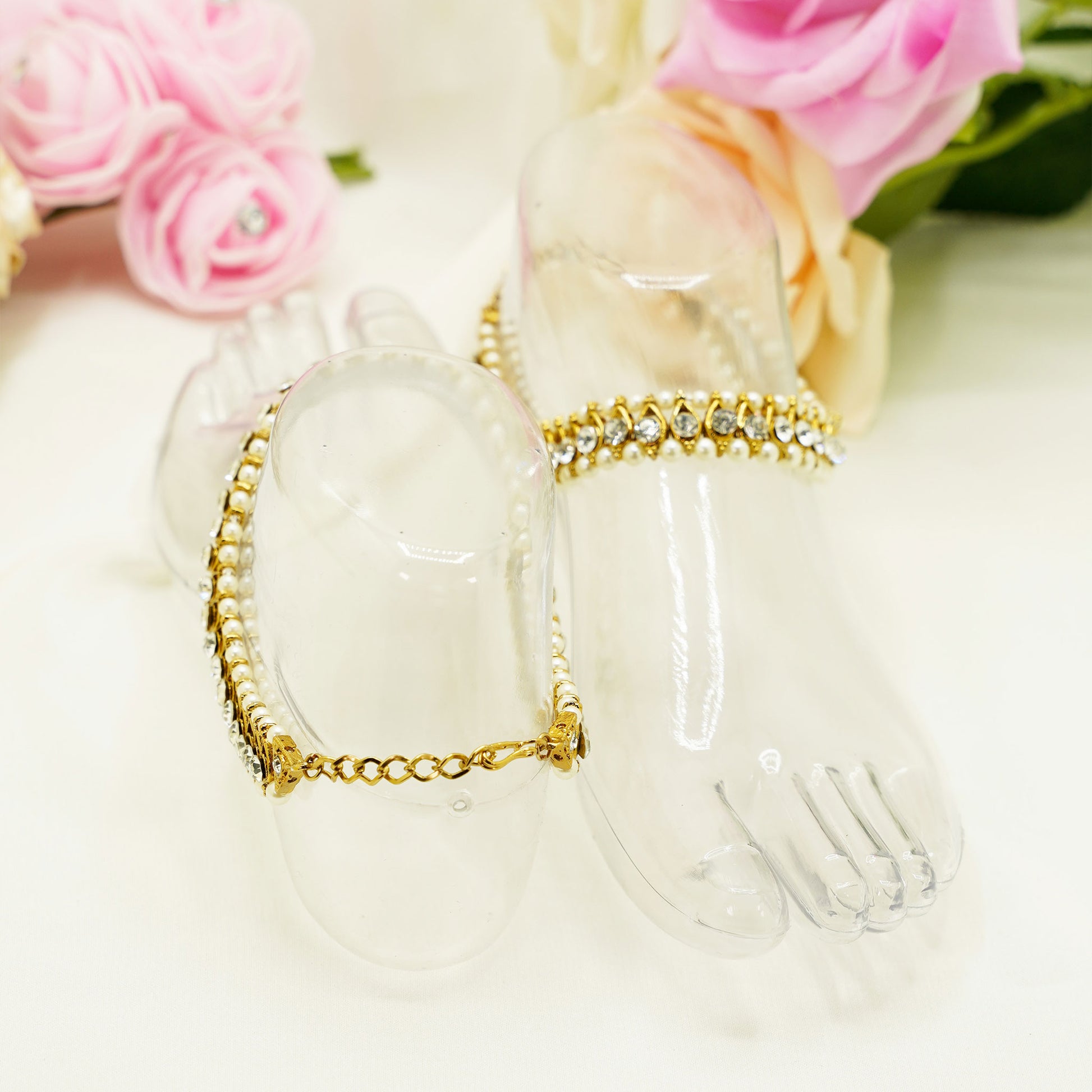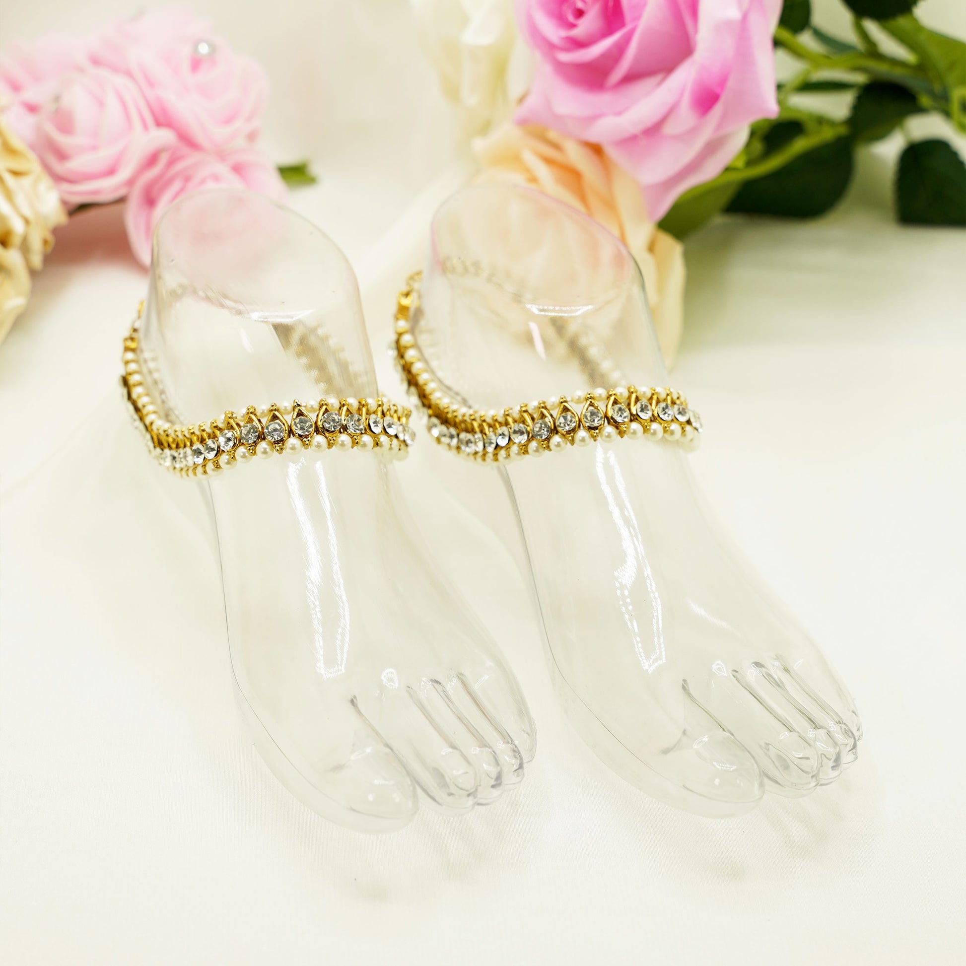 Enhance your bridal look with this stunning 2-piece anklet set (payal), designed to add royalty and tradition to every step. Whether you’re choosing the elegant stone-studded pair or the regal green bead variation, each anklet features premium detailing and a graceful drape—perfect for Nikah, Walima, or cultural celebrations.