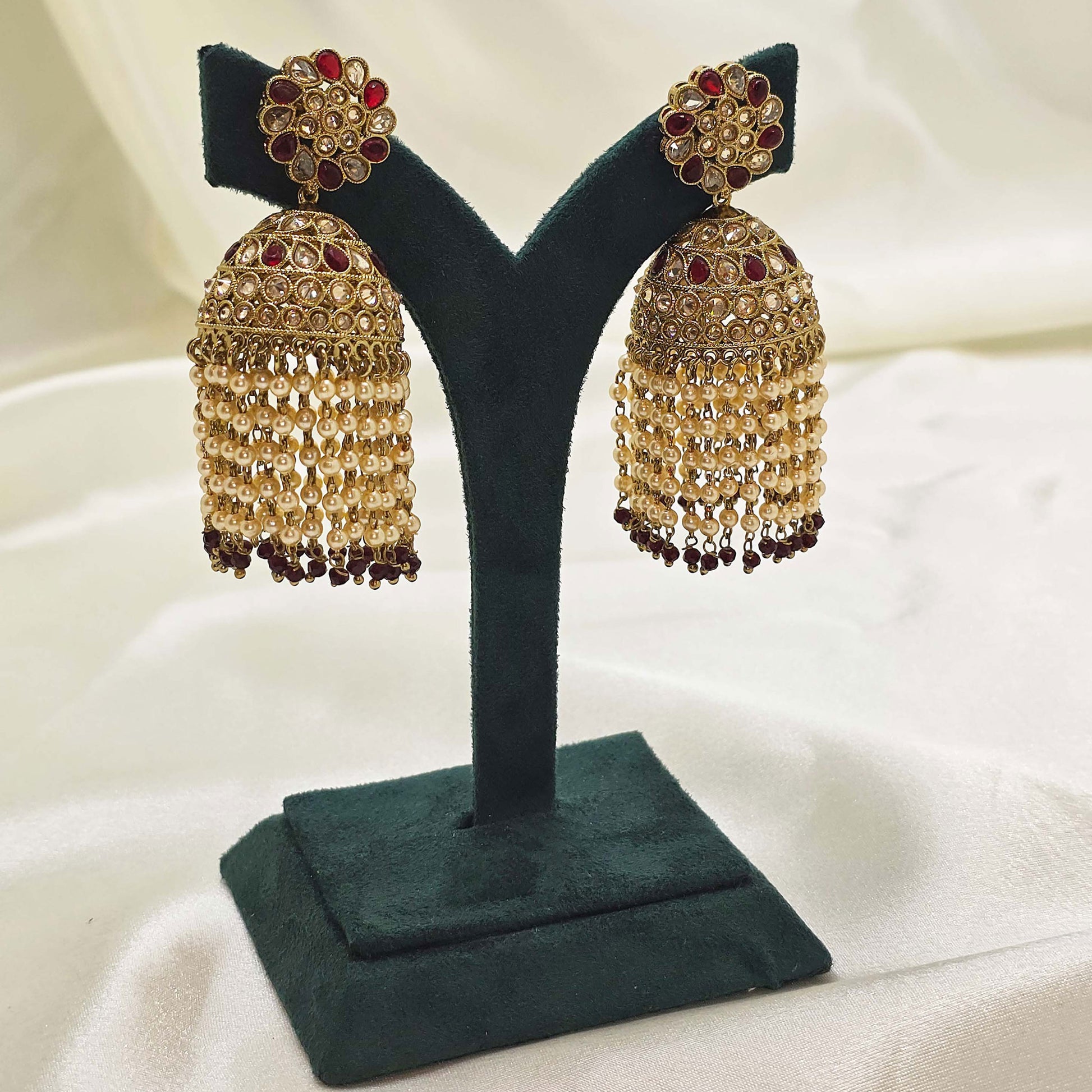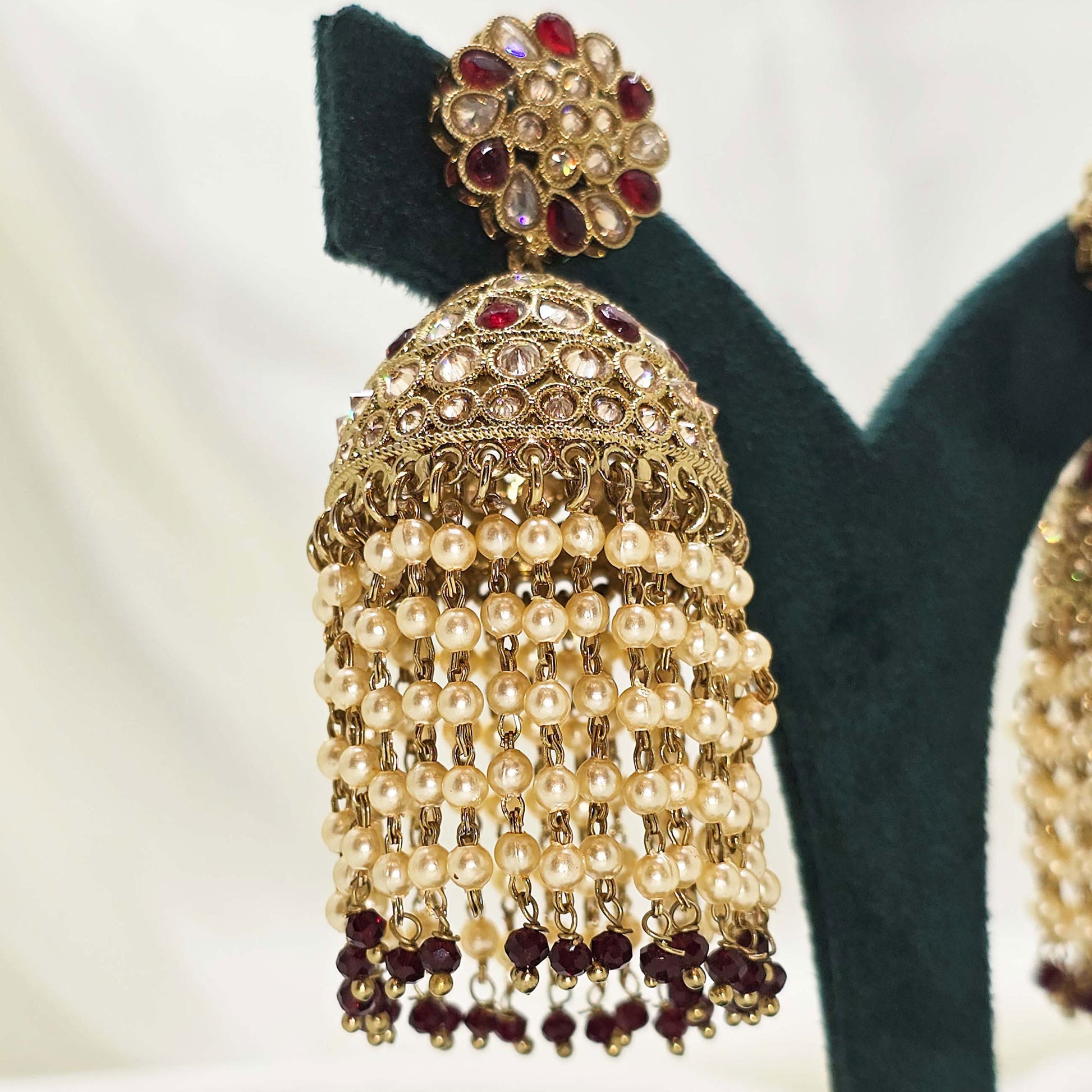 Set Includes: 1 Pair of Dome Jhumka Earrings with Pearl Chains