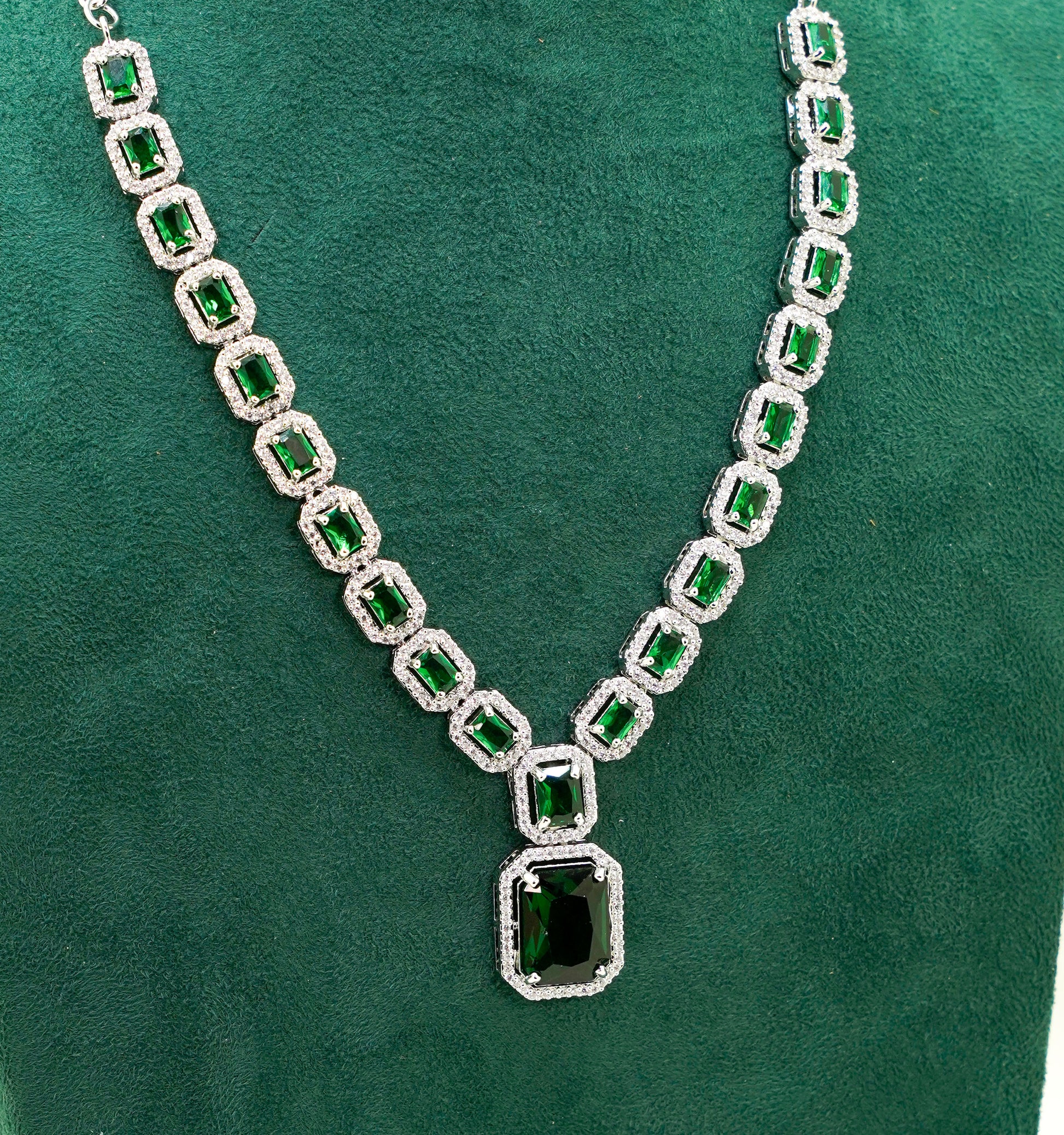 Matching Earrings – Drop-style earrings with dual rectangular stones for a coordinated finish.