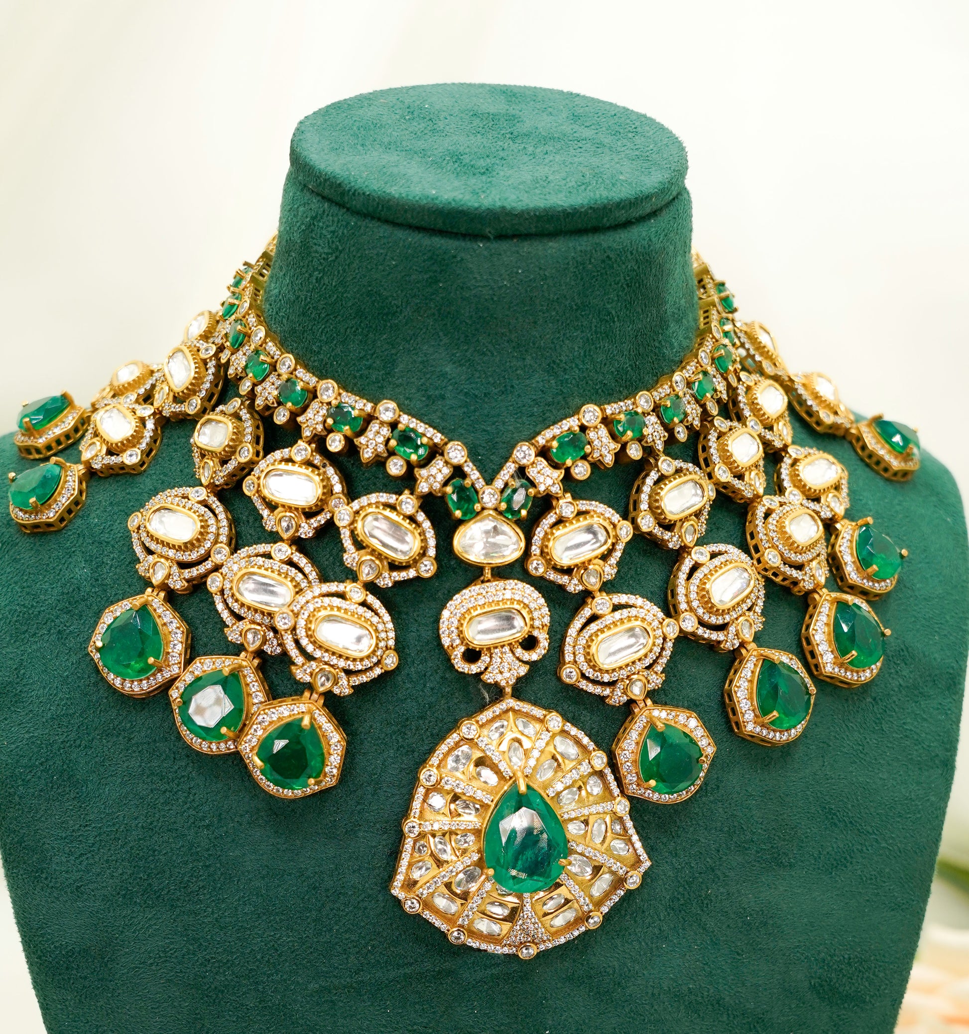 🎁 Complete Set – Includes a heavy choker-style necklace with center drop pendant and matching earrings.