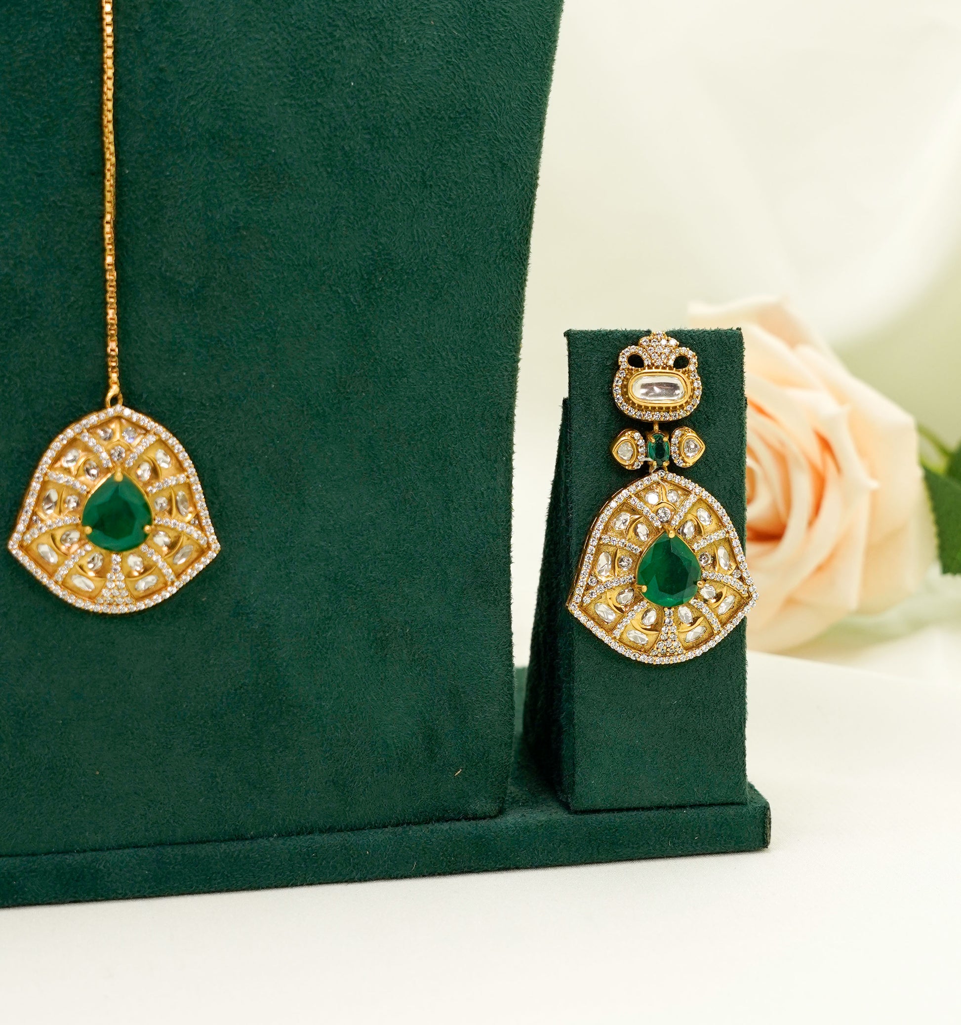 🌿 Green & Gold Royal Finish – Features elegant green gemstone accents paired with gold plating for a regal touch.