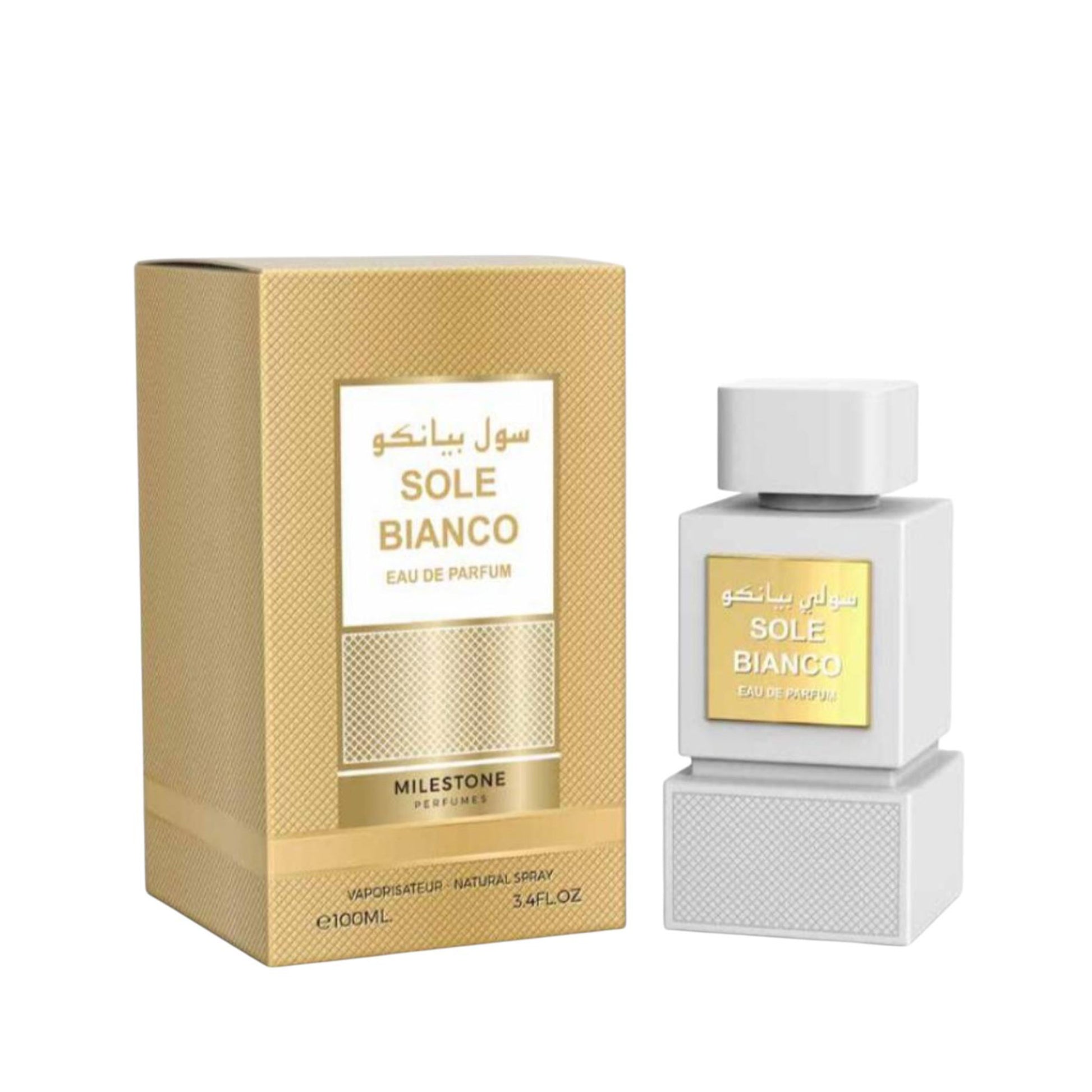 Sole Blanco – 100ML (Unisex) is a luxurious and vibrant Eau De Parfum that masterfully blends creamy, spicy, and floral notes into a warm, inviting fragrance. It opens with a fresh and exciting burst of pistachio, bergamot, cardamom, and pink pepper—bright and invigorating. The heart reveals a rich floral bouquet of ylang-ylang, jasmine, and tuberose, adding elegance and softness. The scent settles into a comforting base of coconut, benzoin, amber, vanilla, and tonka bean, delivering lasting warmth and sensuality. Perfect for those who appreciate Arabic-inspired scents with affordable luxury and long-lasting performance.