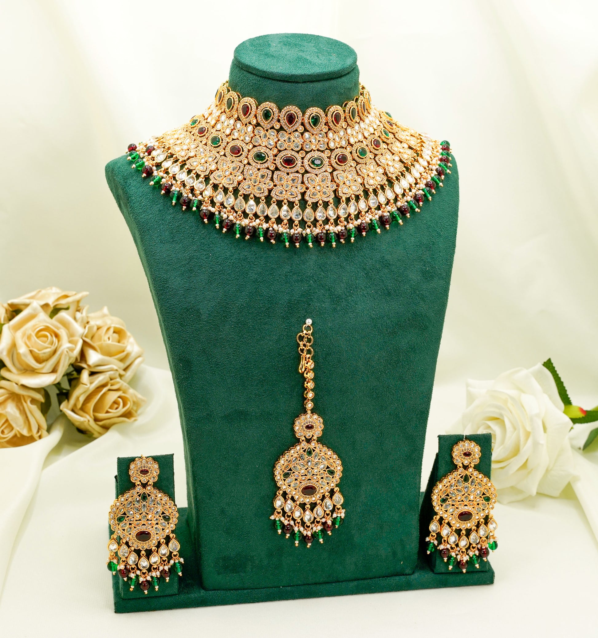Bring out your inner queen with this stunning multicolor bridal jewelry set. Designed for special occasions, it combines traditional elegance with rich, colorful details.