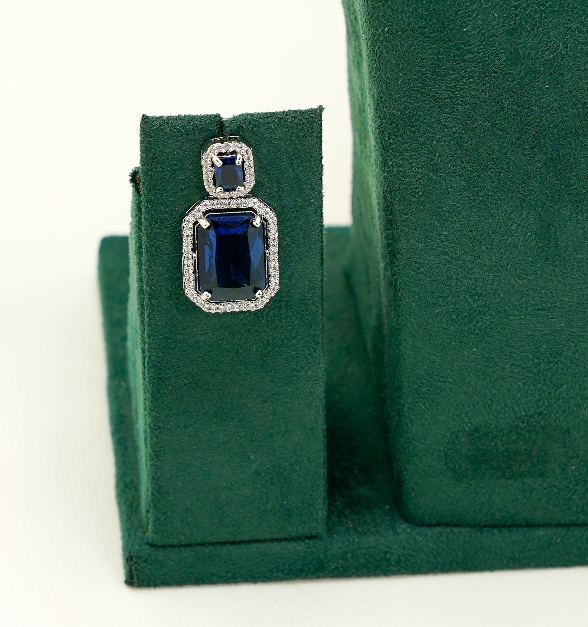 Matching Earrings – Drop-style earrings with dual rectangular stones for a coordinated finish.