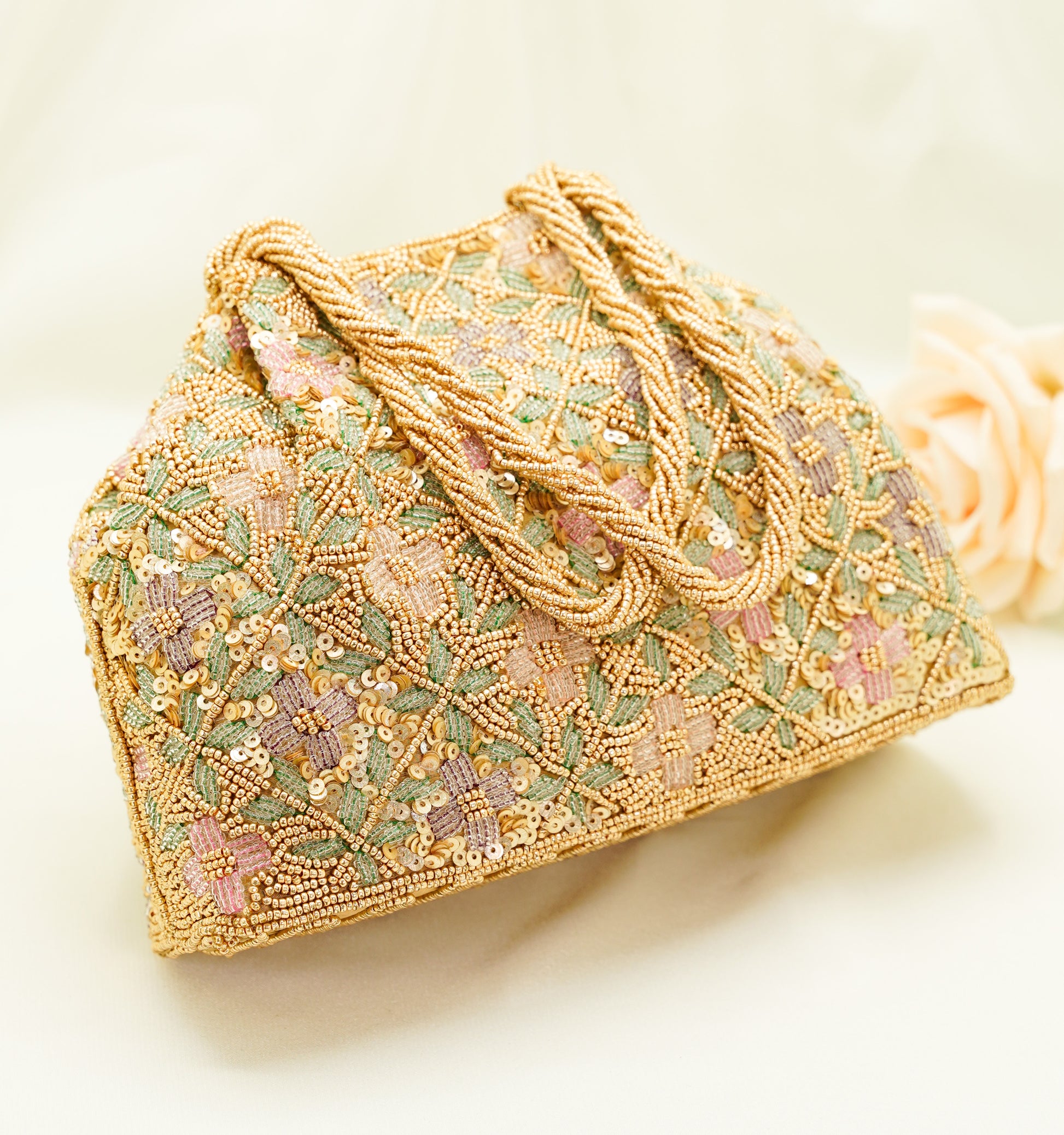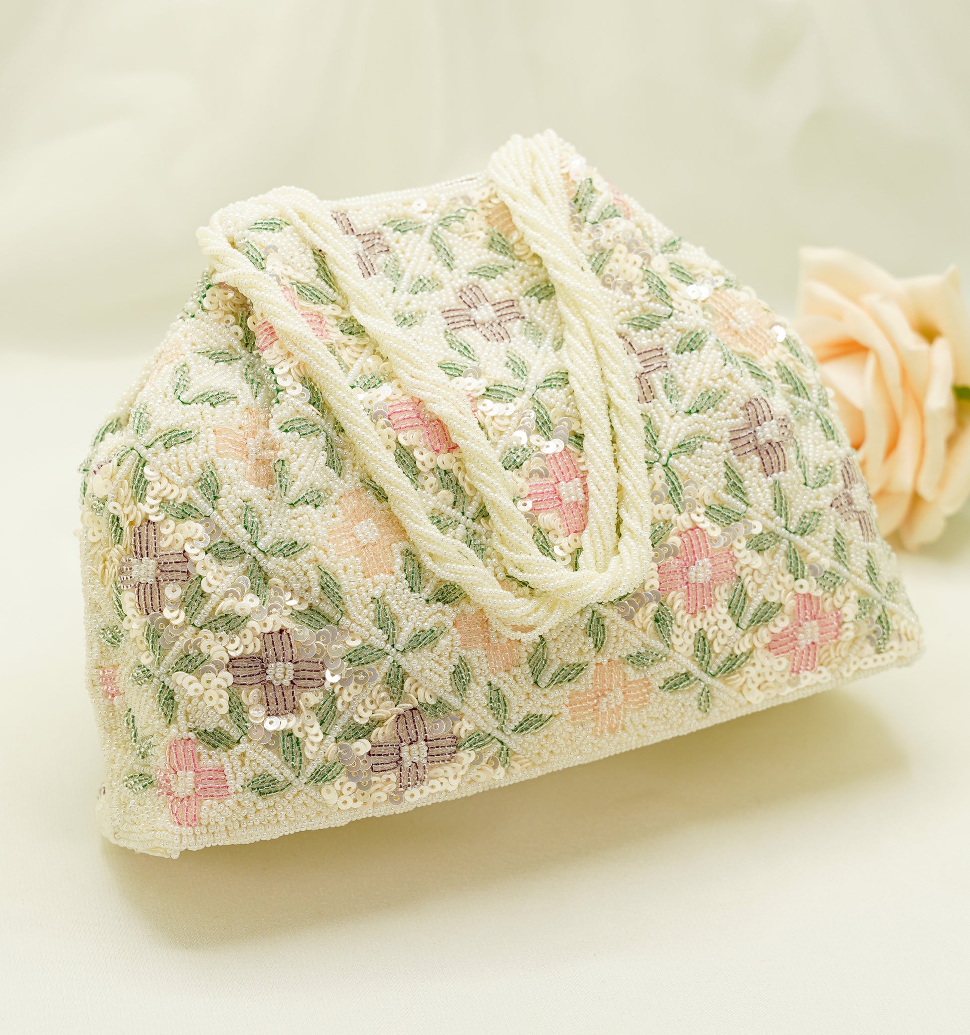 Elevate your festive style with this elegant Beaded Handbag, a perfect mix of glamour and tradition. Designed with meticulously hand-sewn mixed seed beads in a flowering wave pattern, this soft shell handbag adds a touch of luxury to every celebration.