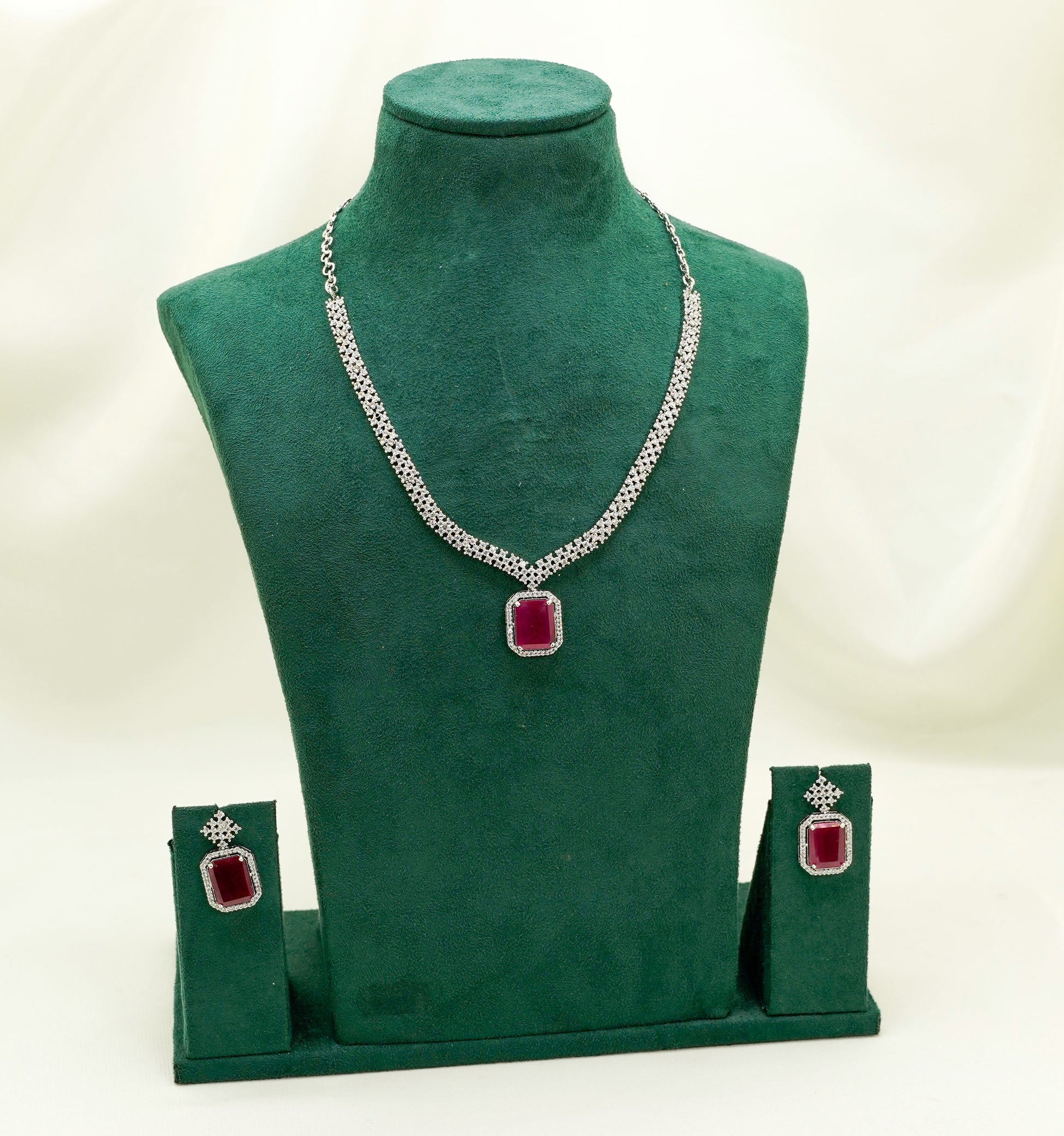 Matching Drop Earrings: Earrings mirror the necklace’s pendant design, creating a harmonious, elegant set perfect for formal occasions.