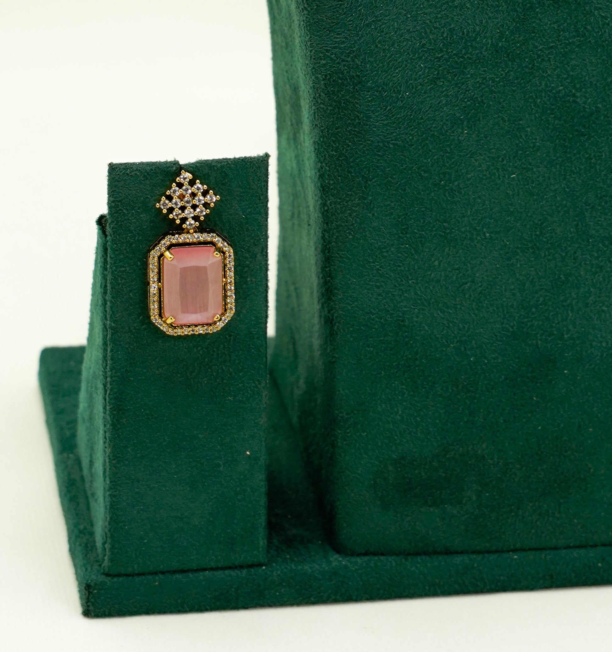 Centerpiece Gemstone: Features radiant emerald-cut Pink citrine stones, known for their warm, sunlit glow.