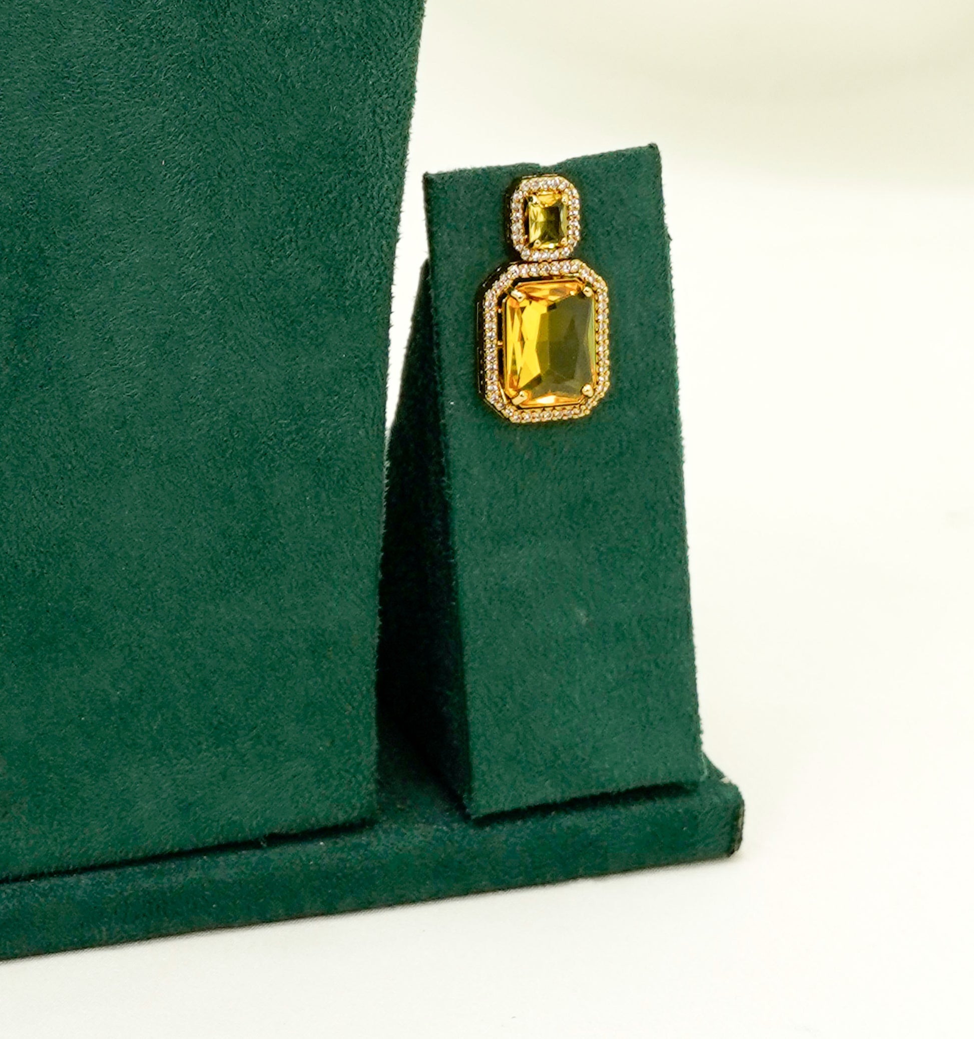 Stunning Yellow Gemstones – Rectangular faceted stones with brilliant sparkle, framed in gold-tone settings.