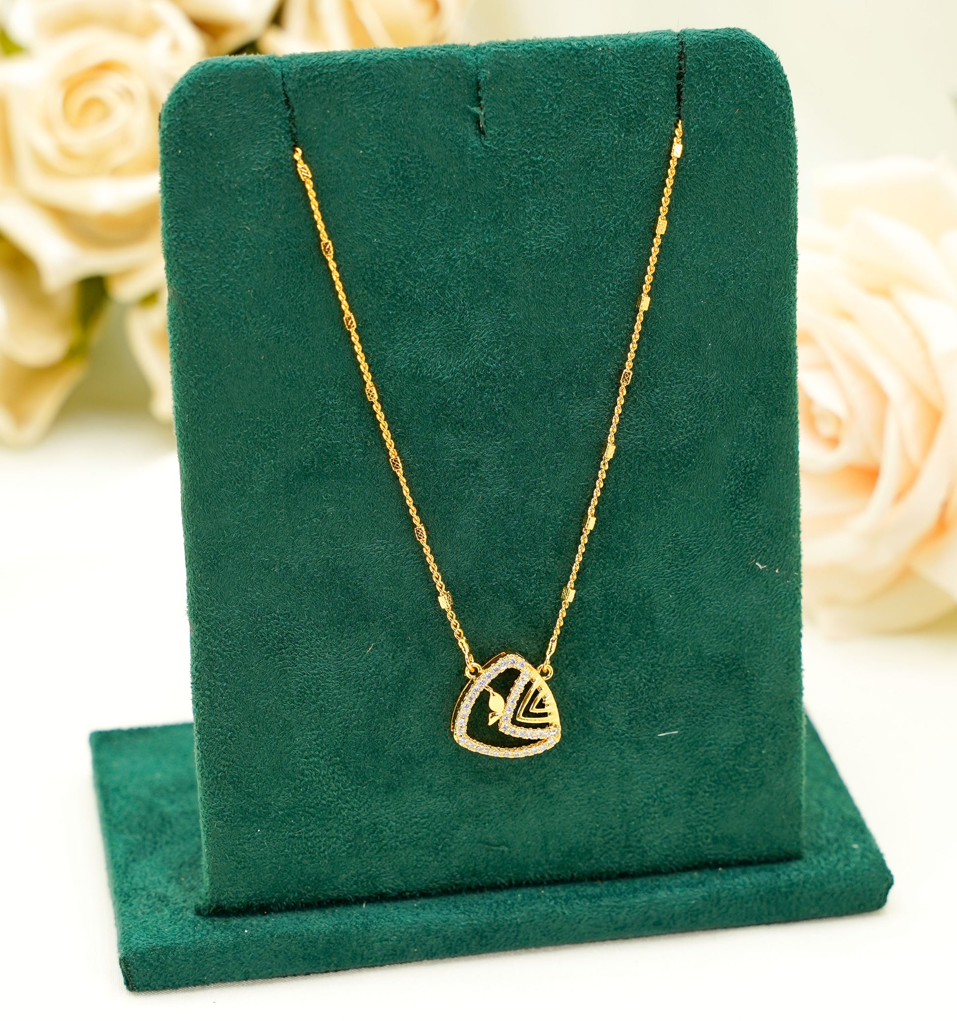 Elevate your jewellery collection with this stunning gold-tone Heart pendant necklace, Featuring a sleek rectangular pendant with softly rounded edges, this piece blends classic elegance with contemporary design.